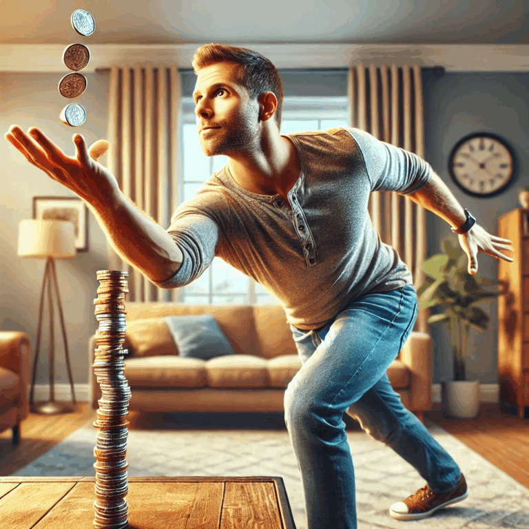 “Stack coins on your elbow and try to catch them with the same hand. Highest number caught in one go wins.” Try beating Dean Gould who's record still stands since 1993 for catching 328 10p pieces.