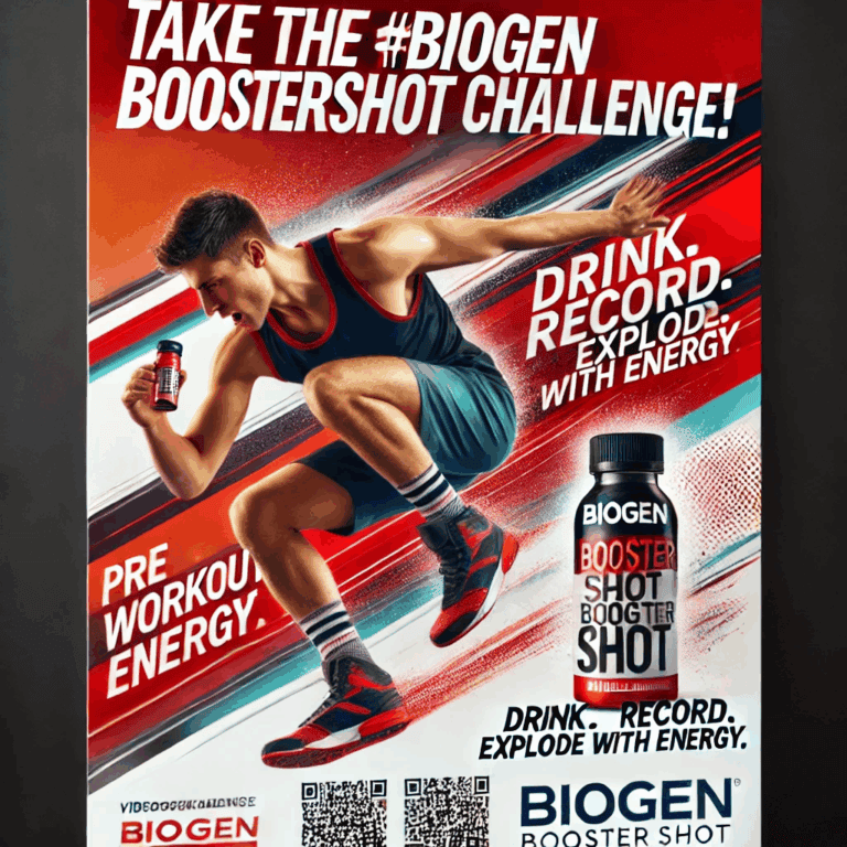 Take a shot of Biogen pre-workout and film yourself doing a 20-second explosive movement (e.g. burpees, jump squats, high knees) — as intensely and energetically as possible.